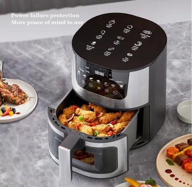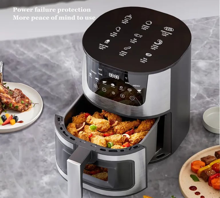 Our hot air fryers use advanced technology to prepare delicious dishes with little oil. It heats up quickly and fries evenly, preserves the natural flavor of the food and reduces the fat content. Whether fries, chicken wings or snacks, it prepares everything quickly and makes every meal healthier and tastier. Save time and enjoy cooking!