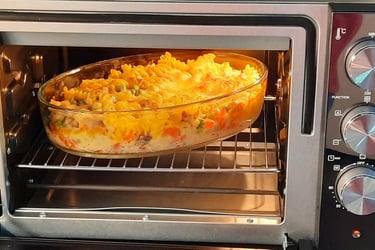 Der beste kleine Backofen, den ich je hatte. Er hat alle Funktionen eines großen Backofens, und alles, was ich bisher ausprobiert habe, ist perfekt gelungen. Ich habe einen Laib Brot gebacken und hatte Angst, dass die Oberseite verbrennen würde, weil sie so nah an den Heizelementen war. Ich habe sie vor dem Backen mit Wasser bestrichen und die Temperatur wegen der Luftzirkulation um 15 °C gesenkt, und es war ein Erfolg. Gegrillter Käse, gefrorene Croissants, gefrorene Lasagne – alles gut. Alles, was ich in einem normalen Ofen zubereiten würde, würde ich auch in diesem zubereiten.